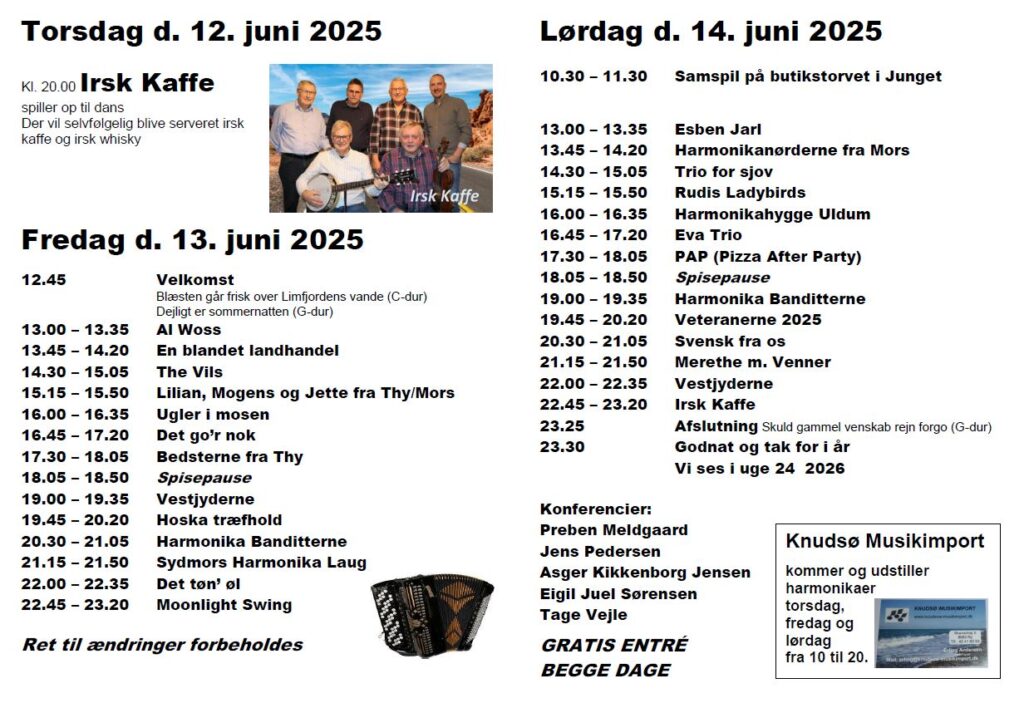 Til Junget Træf mødes musikanter fra hele landet for at spille musik og hygge sig sammen. Vi elsker at være værter for de glade musikanter, der skaber liv og god stemning hvert år i juni.